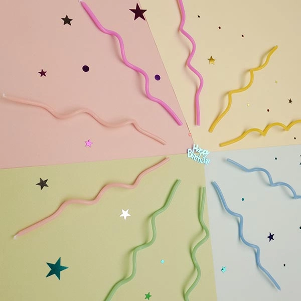 귀여운 파스텔 꼬불 생일초